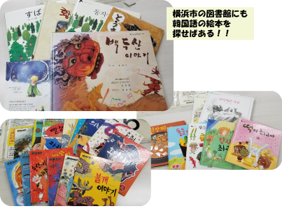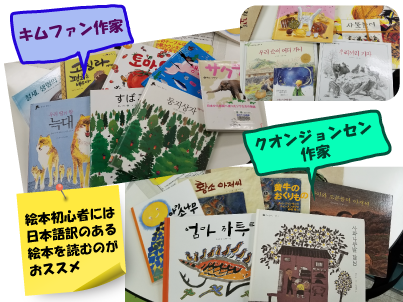 後半の自由読書時間に日本語訳のある本、或いは日本語の絵本の韓国語訳の絵本を図書館から借りたりして持っていきました。