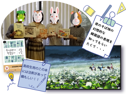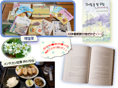 後半は、好きな本を選んで読んでいただくのですが、私のお薦めした権正生先生の『엄마 까투리』(雉の母さん)を読んでいたYさん。さっき『강아지똥』では、「내려앉다」は、鳥が地上に舞い降りる様子だったのに今度は違う意味になっていると。