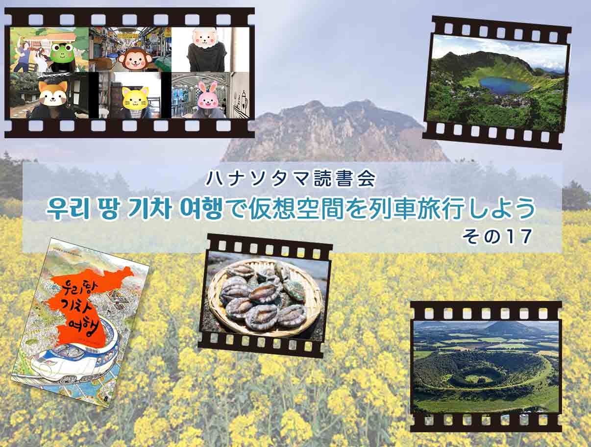 鉄道の旅は終わりましたが、絵本にはまだ済州島・北朝鮮などが残っているので読書会では扱います。済州島も色々調べると見所沢山ですので3回にわけて行う予定です。今日は1回目で、絵本に載っている文章から進めていきました。